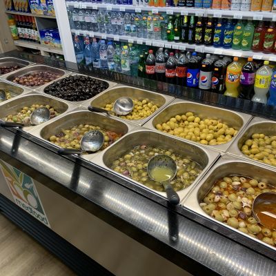 We also offer a deli range with olives, cheeses, pickles, try before you buy- just ask.